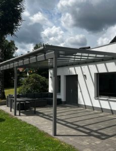 Zu unserem Portfolio gehören auch hochwertige Terrassenüberdachungen aus Aluminium, die Ihr Zuhause nicht nur funktional, sondern auch ästhetisch bereichern. Mit modernster Technik und robusten Materialien bieten wir Ihnen maßgeschneiderte Lösungen, die Wind und Wetter trotzen. Ob als Schutz vor Regen, als Sonnenschutz oder einfach als stilvolles Highlight – wir realisieren Ihre individuelle Wunschüberdachung mit höchster Präzision und Langlebigkeit. Vertrauen Sie auf unsere Expertise, und genießen Sie Ihre Terrasse das ganze Jahr über!